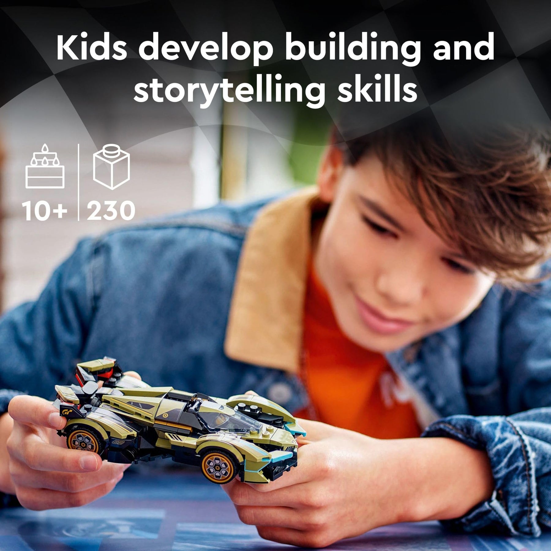 Siente la potencia italiana con el LEGO Speed Champions 76923 Lamborghini V12 Vision GT, un modelo de colección con diseño aerodinámico, detalles hexagonales y minifigura de piloto. Ideal para fanáticos de los autos, la velocidad y el diseño exclusivo de Lamborghini.