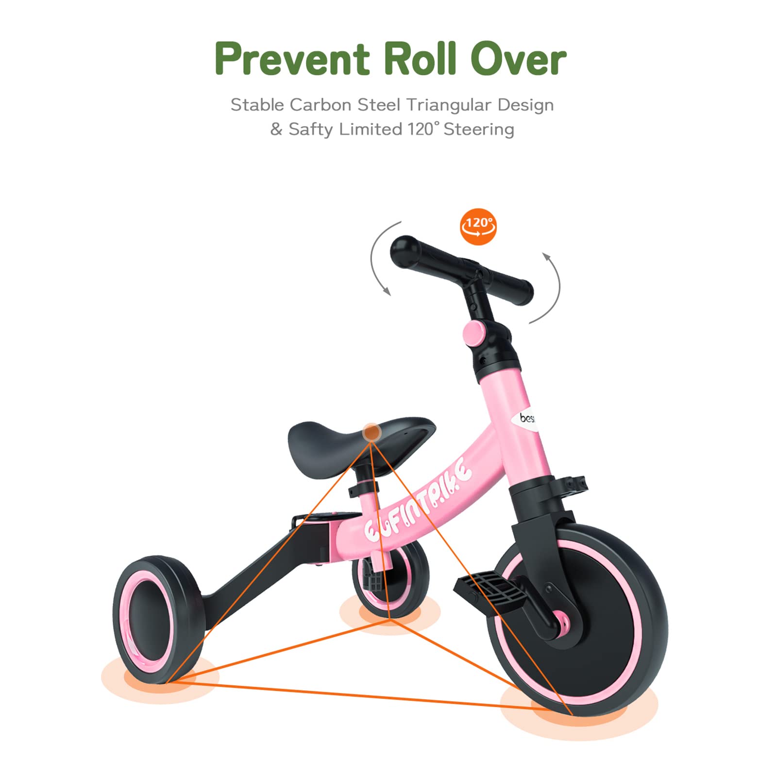 El besrey 5 en 1 ofrece un diseño multifuncional que permite adaptarse al crecimiento del niño. Se convierte fácilmente de triciclo a bicicleta de equilibrio, con opción de añadir o quitar los pedales sin herramientas.