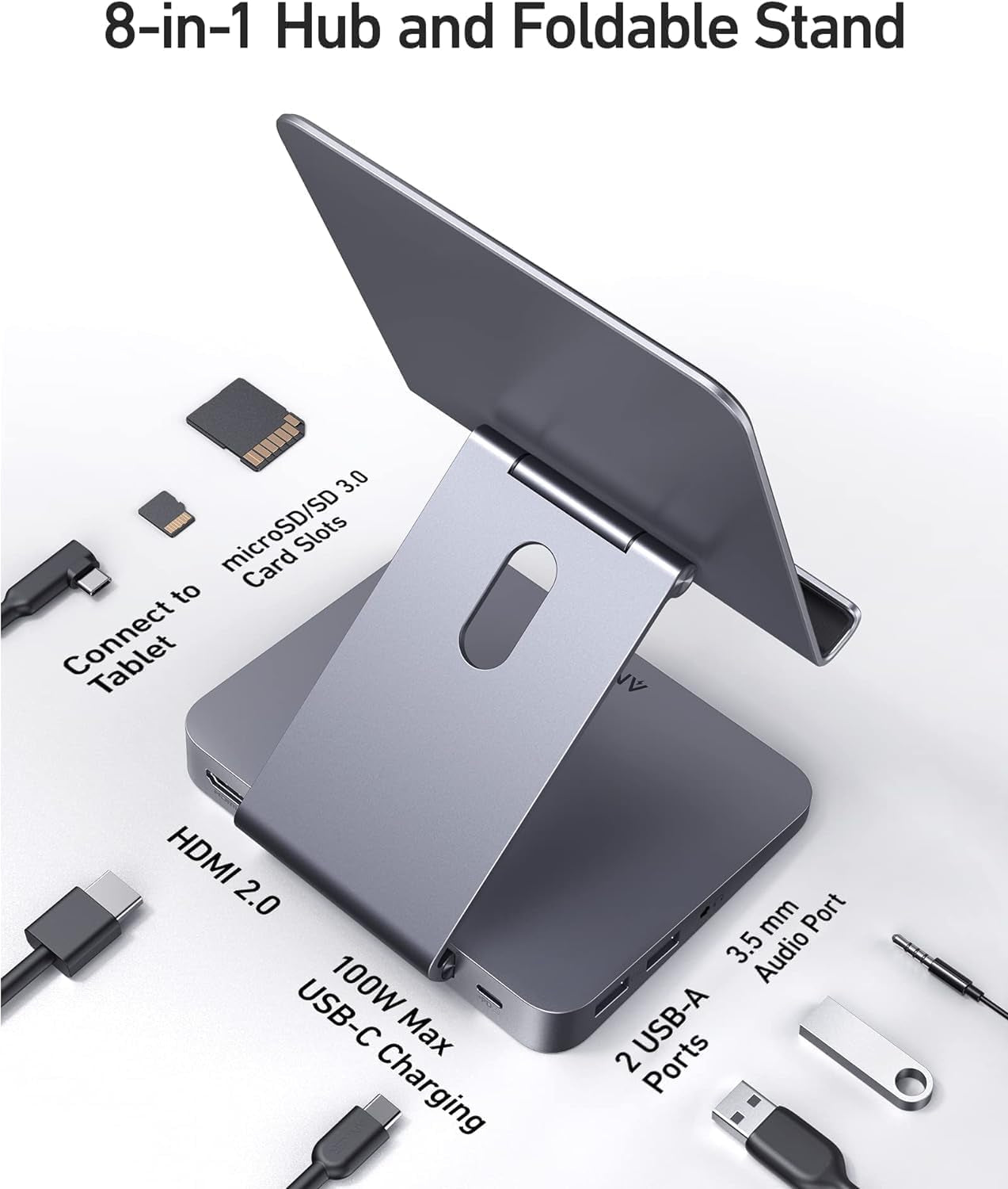 Convierte tu iPad en una estación de trabajo versátil con el Anker 551 USB-C Hub 8 en 1. Este potente accesorio integra un soporte ajustable y múltiples puertos esenciales para trabajar, estudiar o crear contenido sin límites. Ideal para quienes necesitan conectividad avanzada en un diseño compacto, resistente y elegante.