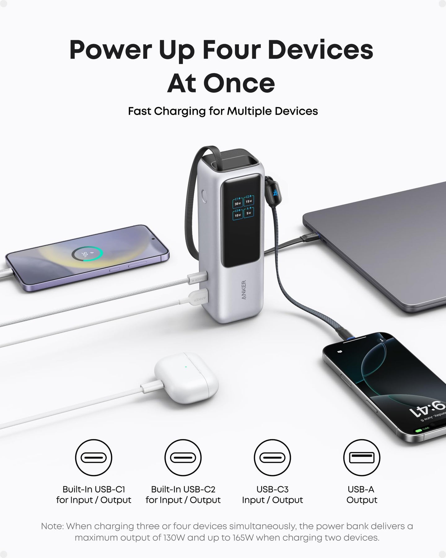 El Anker 737 Power Bank 25000 mAh está diseñado para quienes necesitan máximo rendimiento y portabilidad. Con tres puertos USB-C (hasta 100 W), puede alimentar simultáneamente laptops, smartphones y tablets.