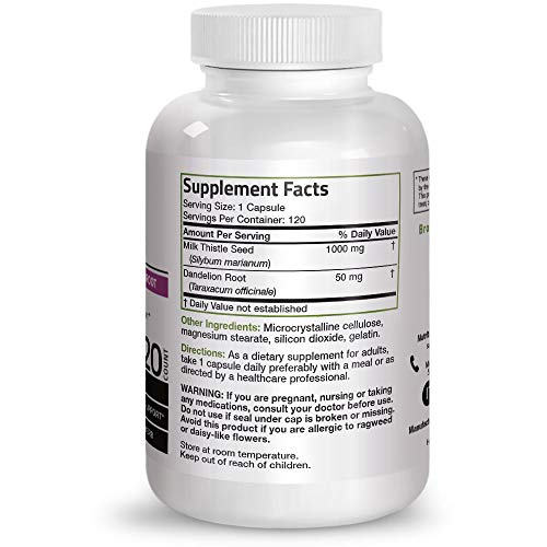 Bronson Cardo Lechoso 1000 mg 120 Cápsulas | Silymarina & Raíz de Diente de León