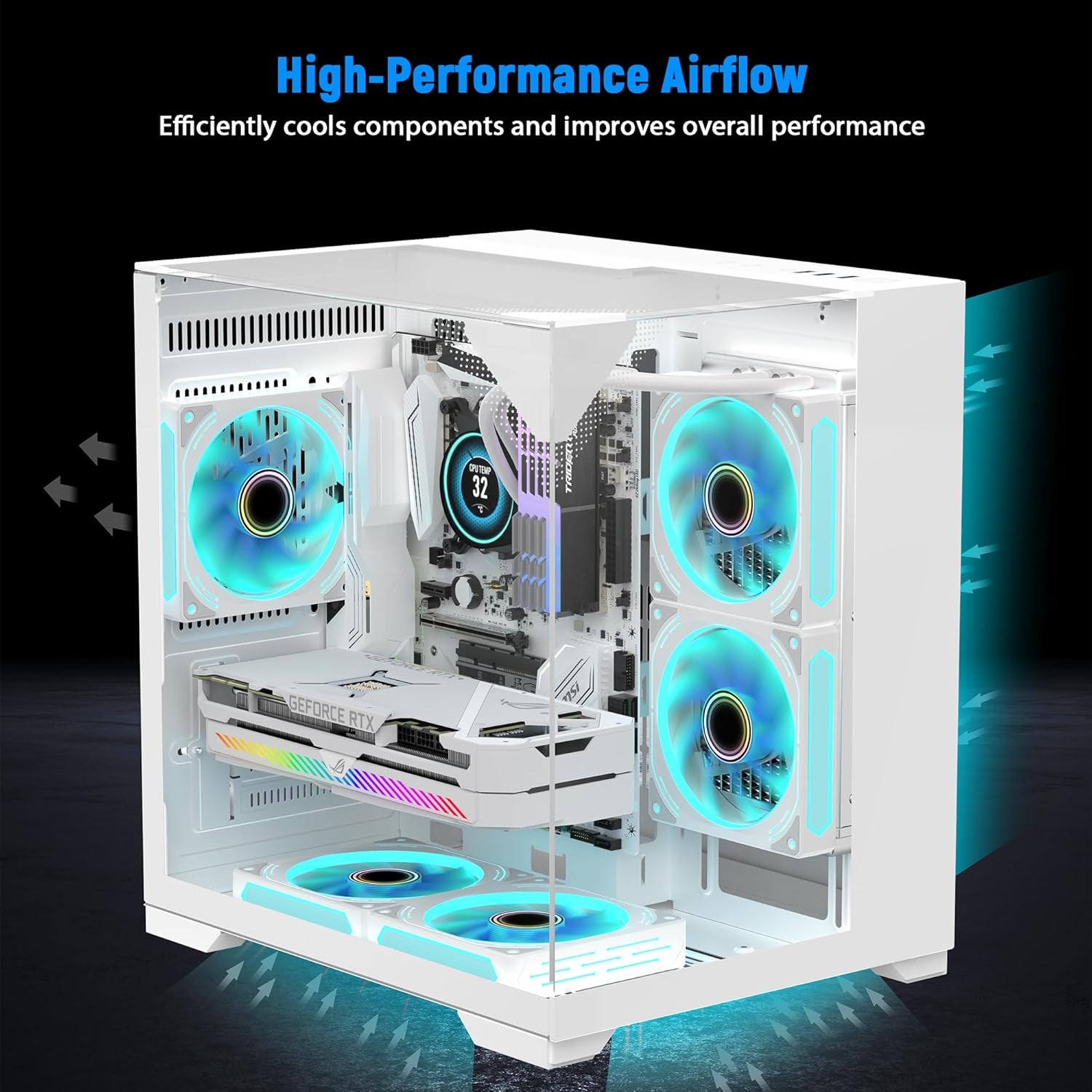 Diseño panorámico de tres lados con vidrio templado: Ofrece una vista clara y elegante de los componentes internos, ideal para mostrar configuraciones personalizadas.