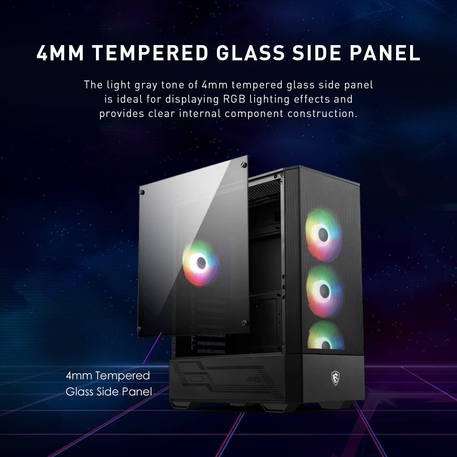Panel lateral de vidrio templado de 4 mm, ofrece una vista clara y elegante de los componentes internos.