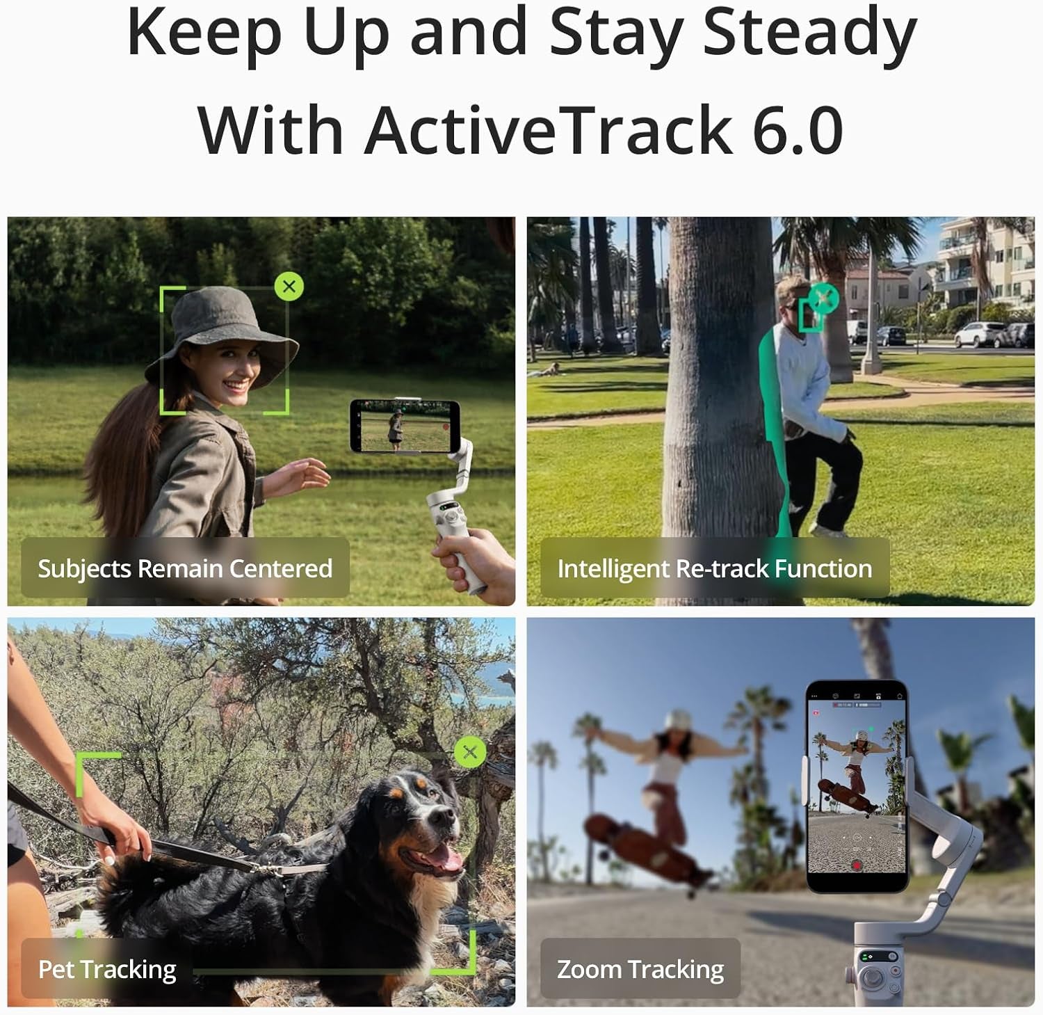 ✔ ActiveTrack 6.0, seguimiento preciso de sujetos en movimiento.