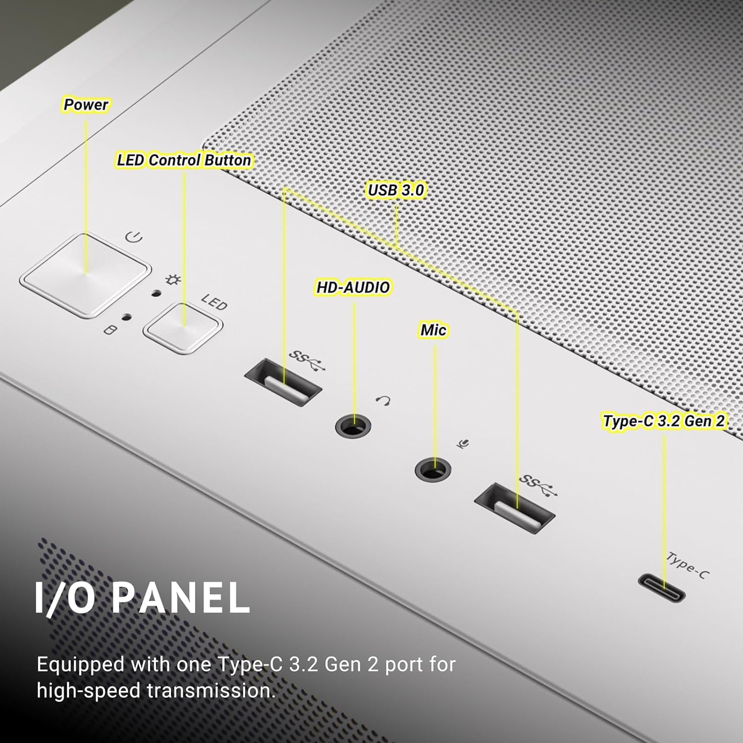Conectividad frontal avanzada, incluye USB 3.2 Gen 2 Tipo-C, USB 3.0 y conectores de audio HD.