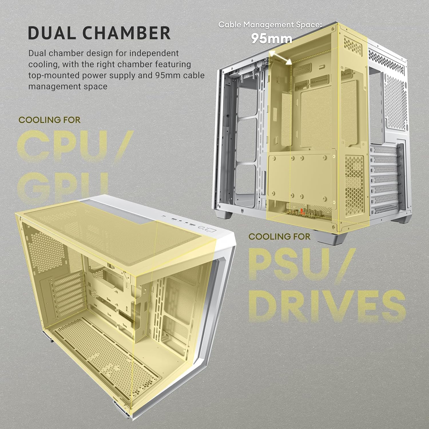 Diseño de doble cámara, mejora la organización del sistema y la refrigeración.