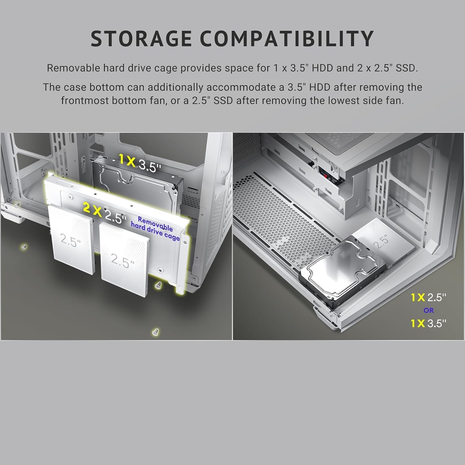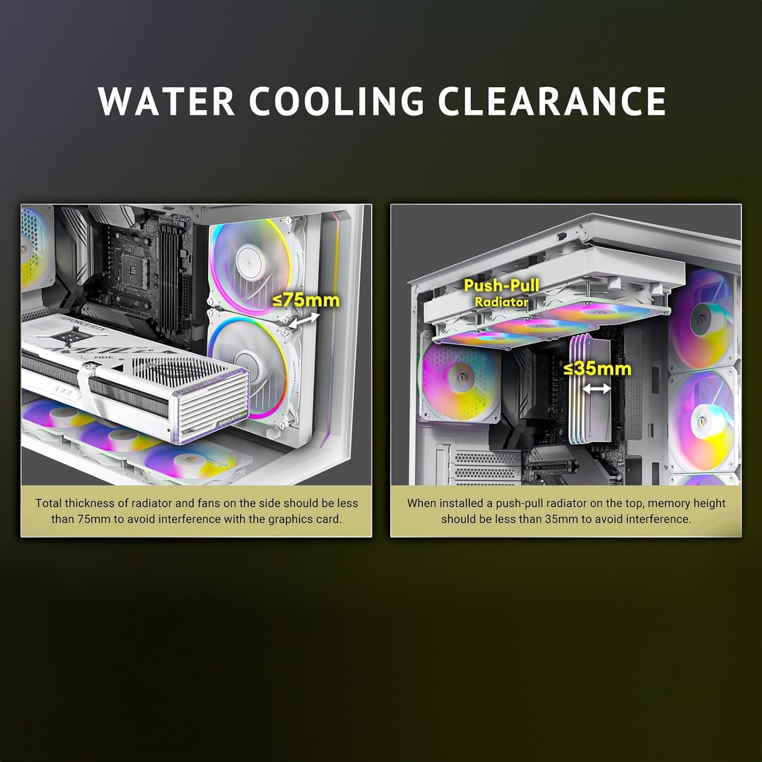Siete ventiladores ARGB PWM preinstalados, flujo de aire optimizado y efectos de iluminación personalizables.