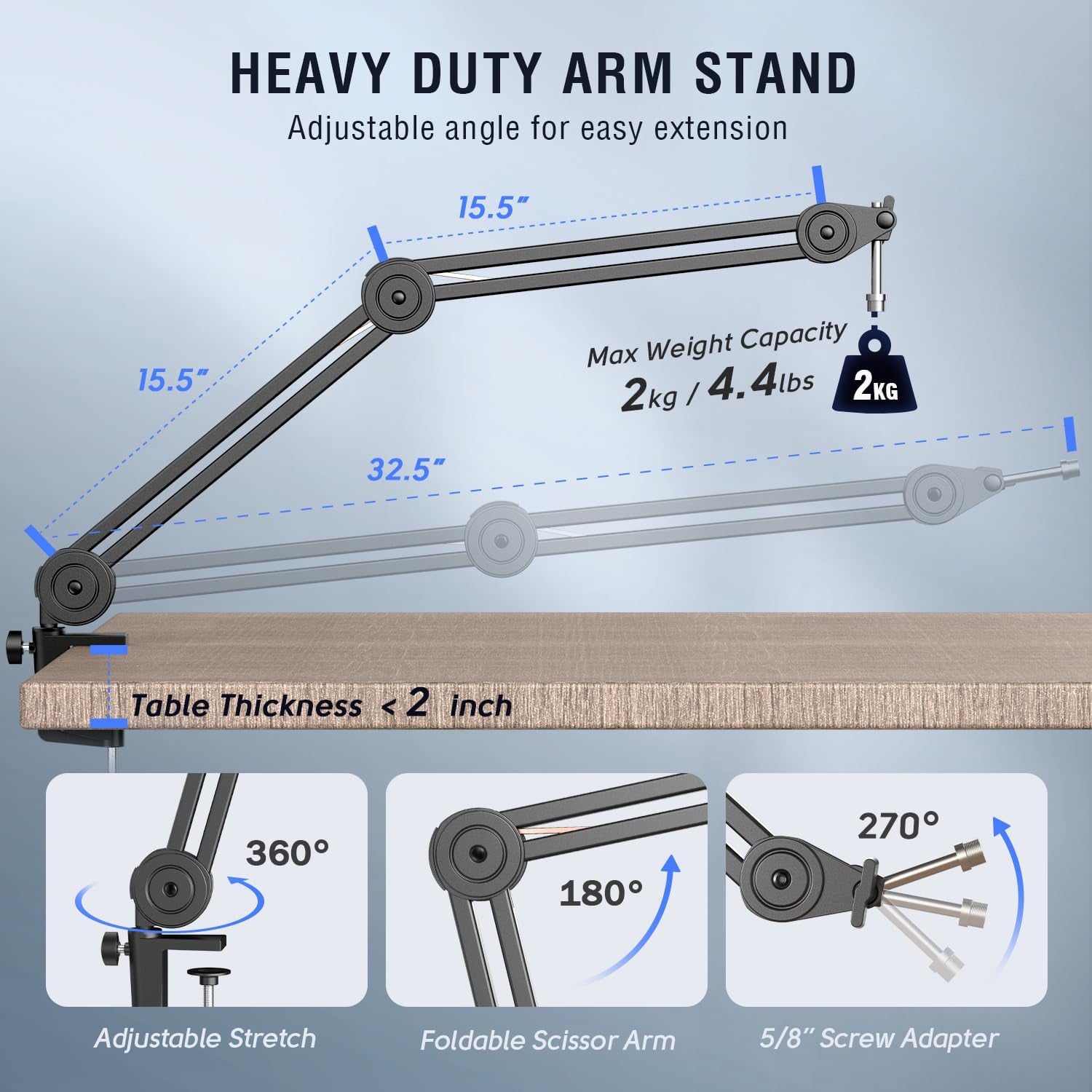 ✔ Brazo articulado reforzado, estabilidad total en cualquier posición.