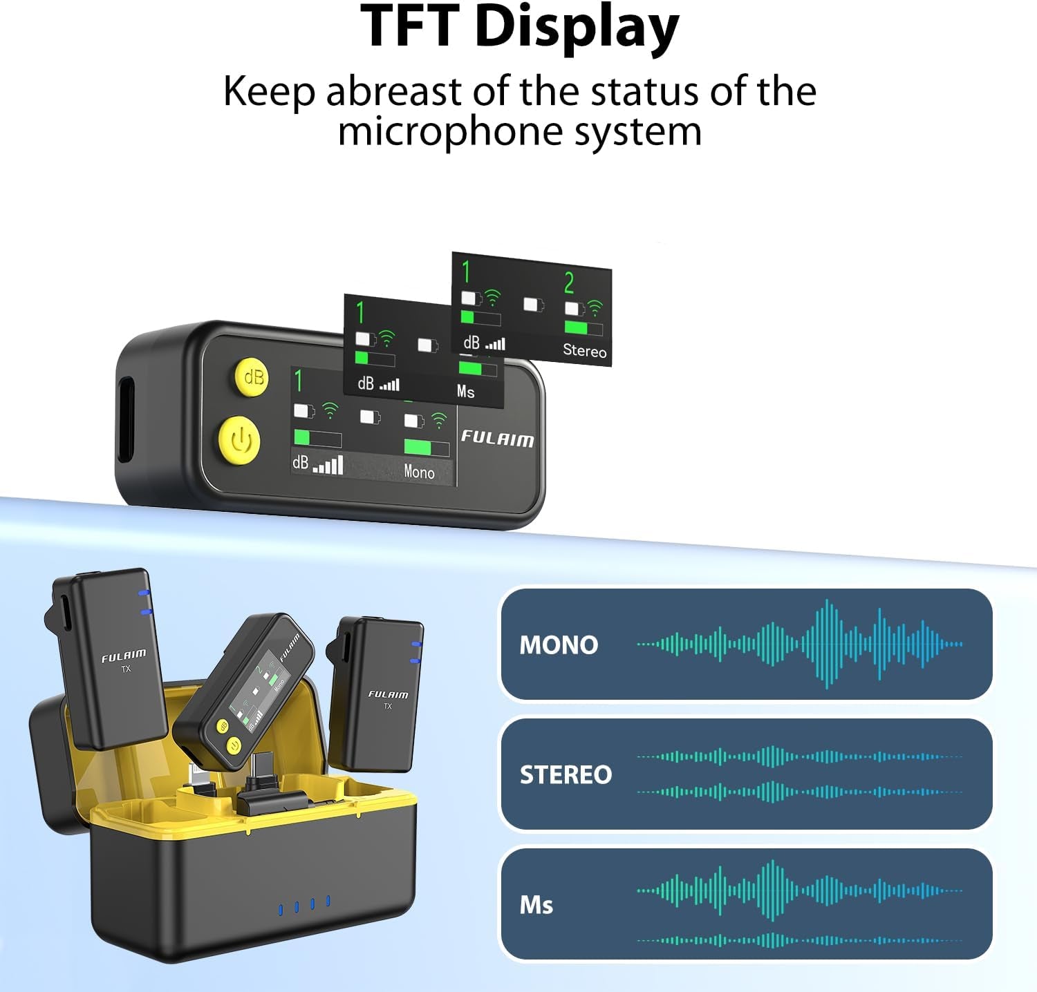 El FULAIM X5M es un sistema de micrófonos lavalier inalámbricos compacto y de alto rendimiento, diseñado para grabaciones móviles, transmisiones en vivo, entrevistas y creación de contenido. Equipado con un estuche de carga portátil, ofrece hasta 18 horas de uso continuo, ideal para jornadas largas de grabación.