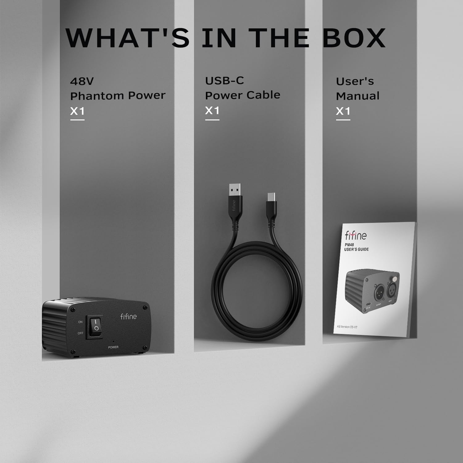 FIFINE 48V Phantom Power with Output/Input, Power Supply for Condenser Microphone, Recording Equipment-Pm48