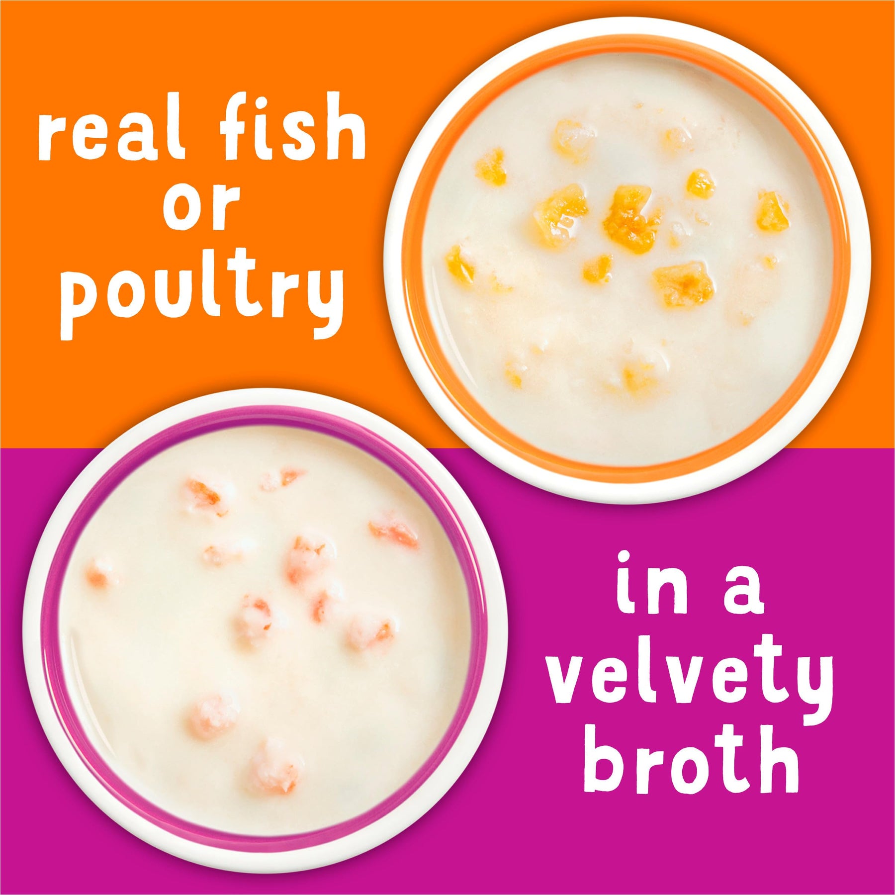 La Purina Friskies Lil’ Soups Variety Pack ofrece una irresistible mezcla de salmón, atún y camarón en suaves sopas sin granos, ideales para complementar la alimentación de los gatos adultos. Hechas con ingredientes naturales y sin subproductos, colorantes ni sabores artificiales, estas sopas brindan una textura cremosa y un sabor que los gatos adoran, además de aportar hidratación y vitaminas esenciales.