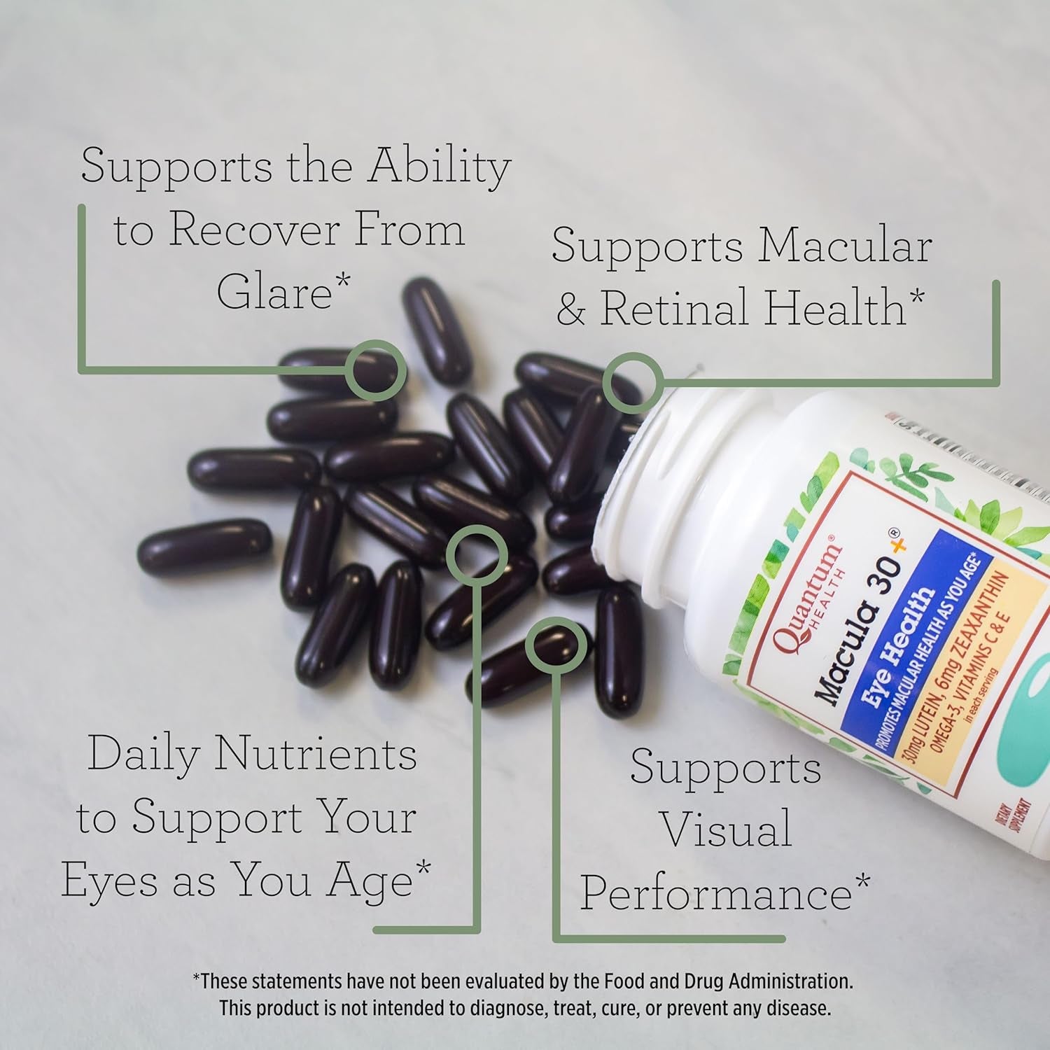 Quantum Health Macula 30+ Eye Health Supplement|Promotes Macular and Retinal Health as You Age|Formulated with Lutein, Zeaxanthin, Omega-3, and Vitamins C & E|60 Softgels, 30 Day Supply