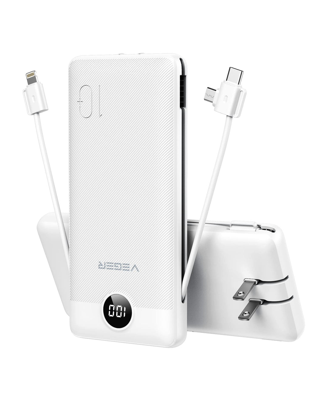 VEGER Power Bank 10000 mAh con cables integrados y enchufe de pared