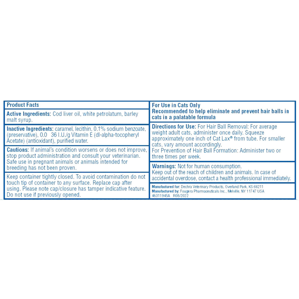 Pasta laxante Dechra Cat Lax gatos eliminacion bolas de pelo 2 oz