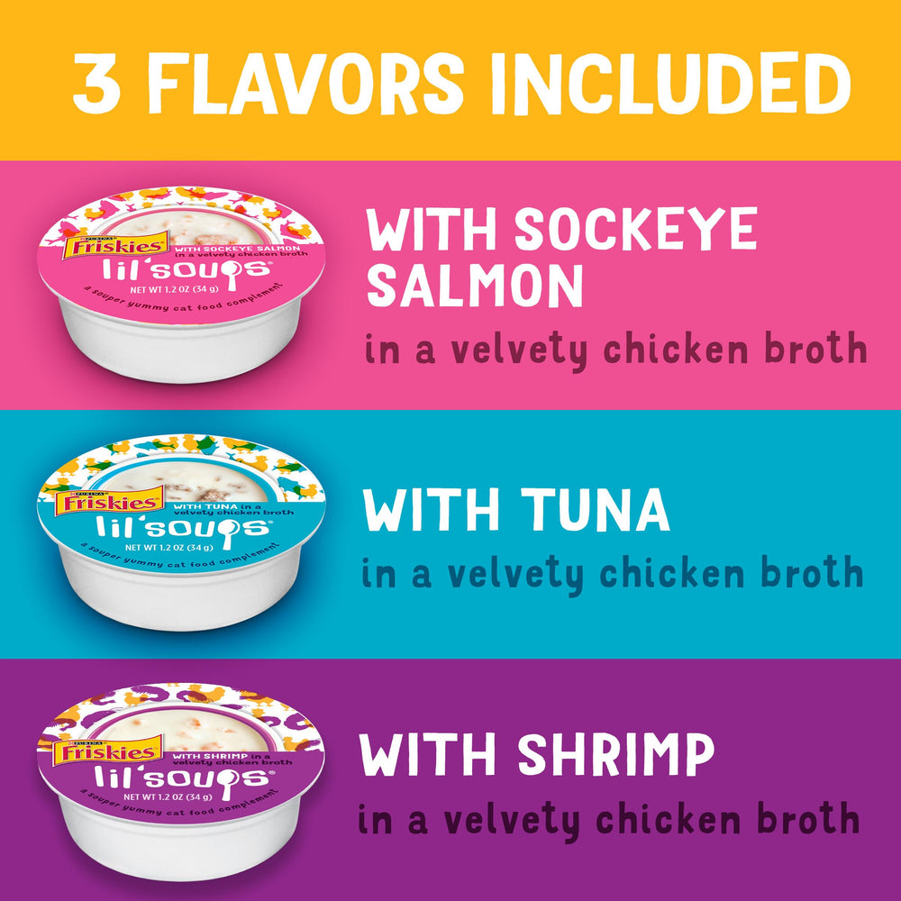 Comida humeda Purina Friskies Lil? Soups gatos salmon atun camaron 30 uds