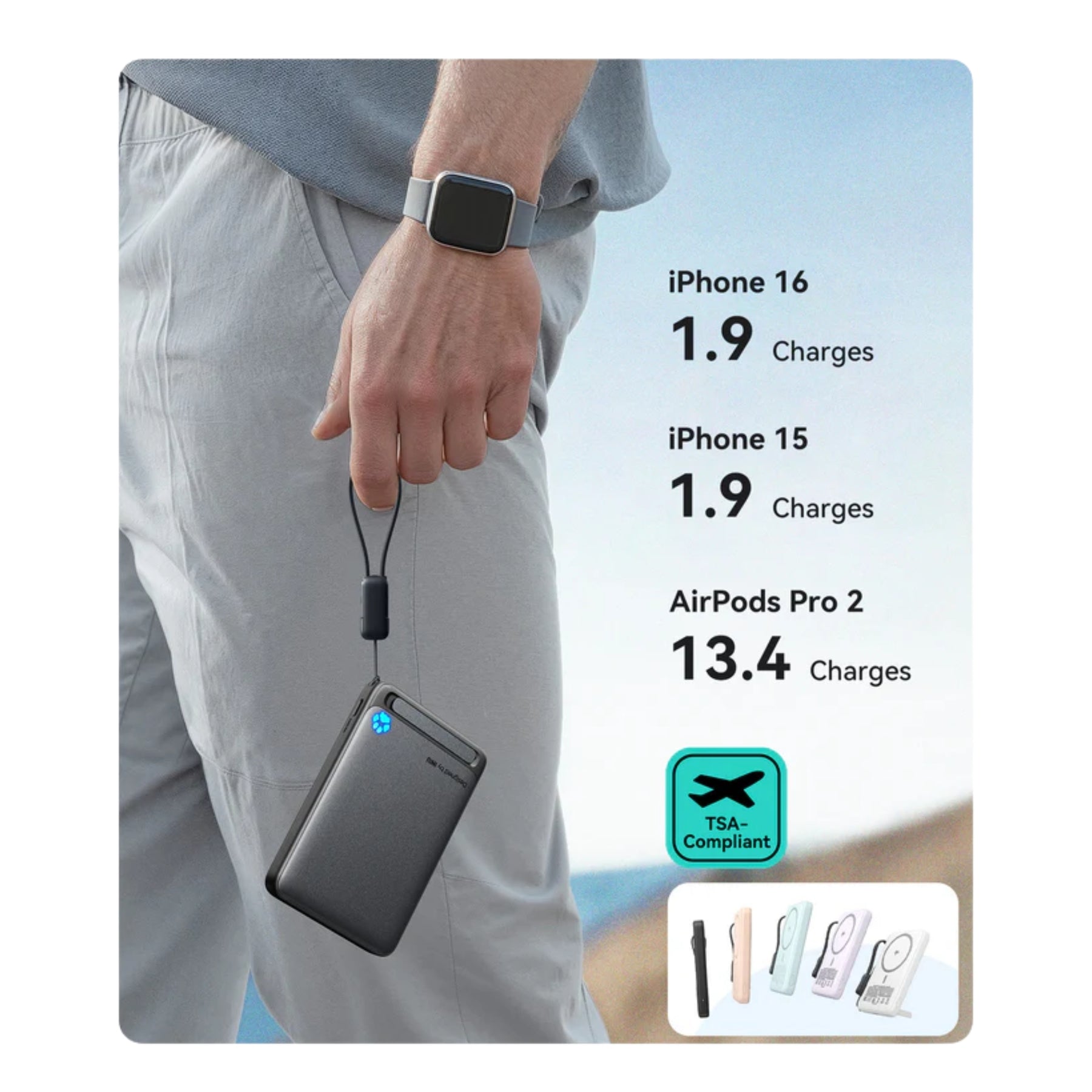 • Compatible con iPhone 12–17, Apple Watch y AirPods.