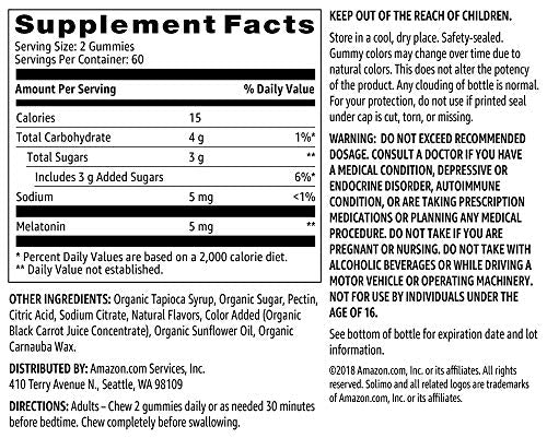 Melatonina Amazon Basics 5 mg – 120 gomitas veganas