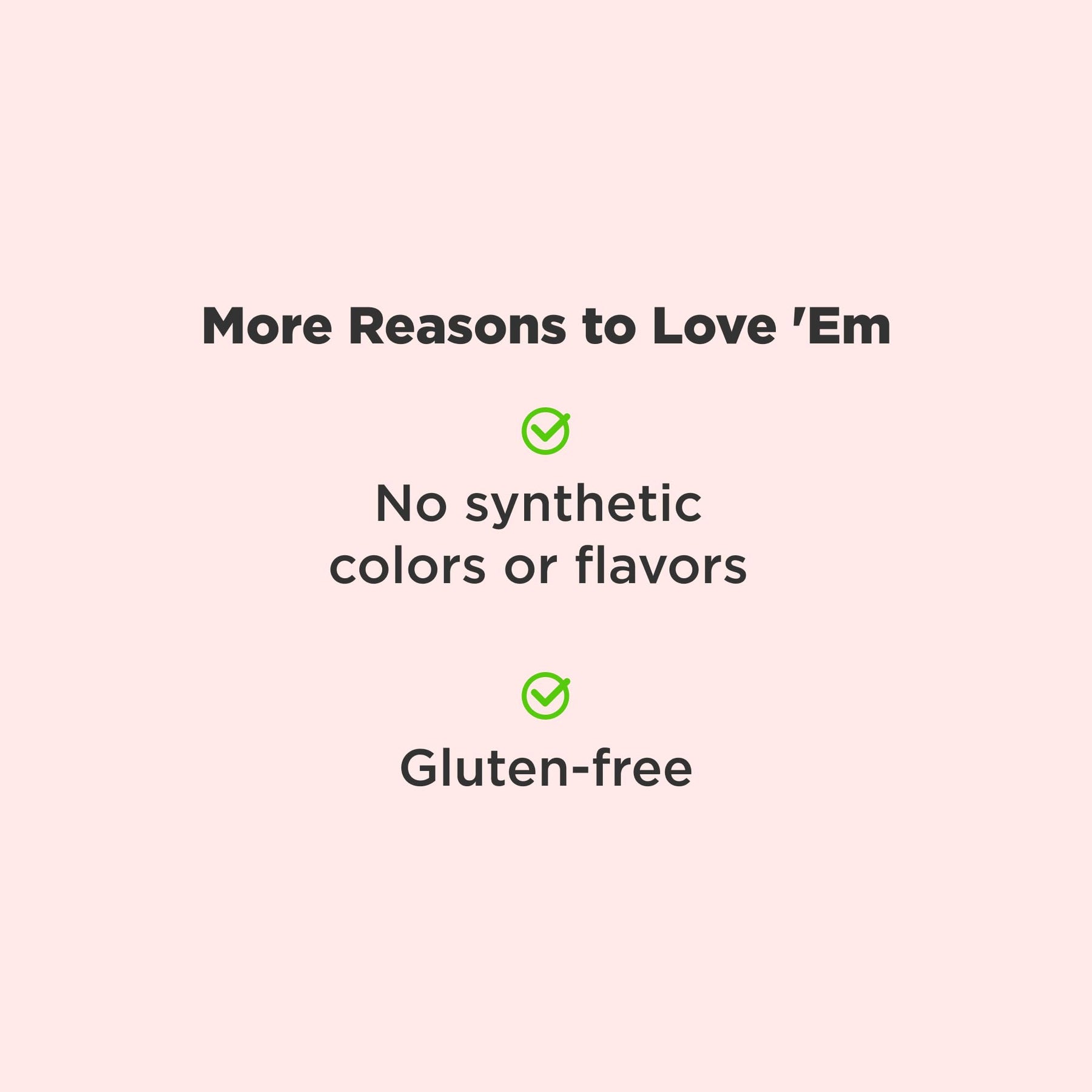 • Características: Sin gluten; sabores naturales de bayas; masticables (sin necesidad de agua con la gomita).