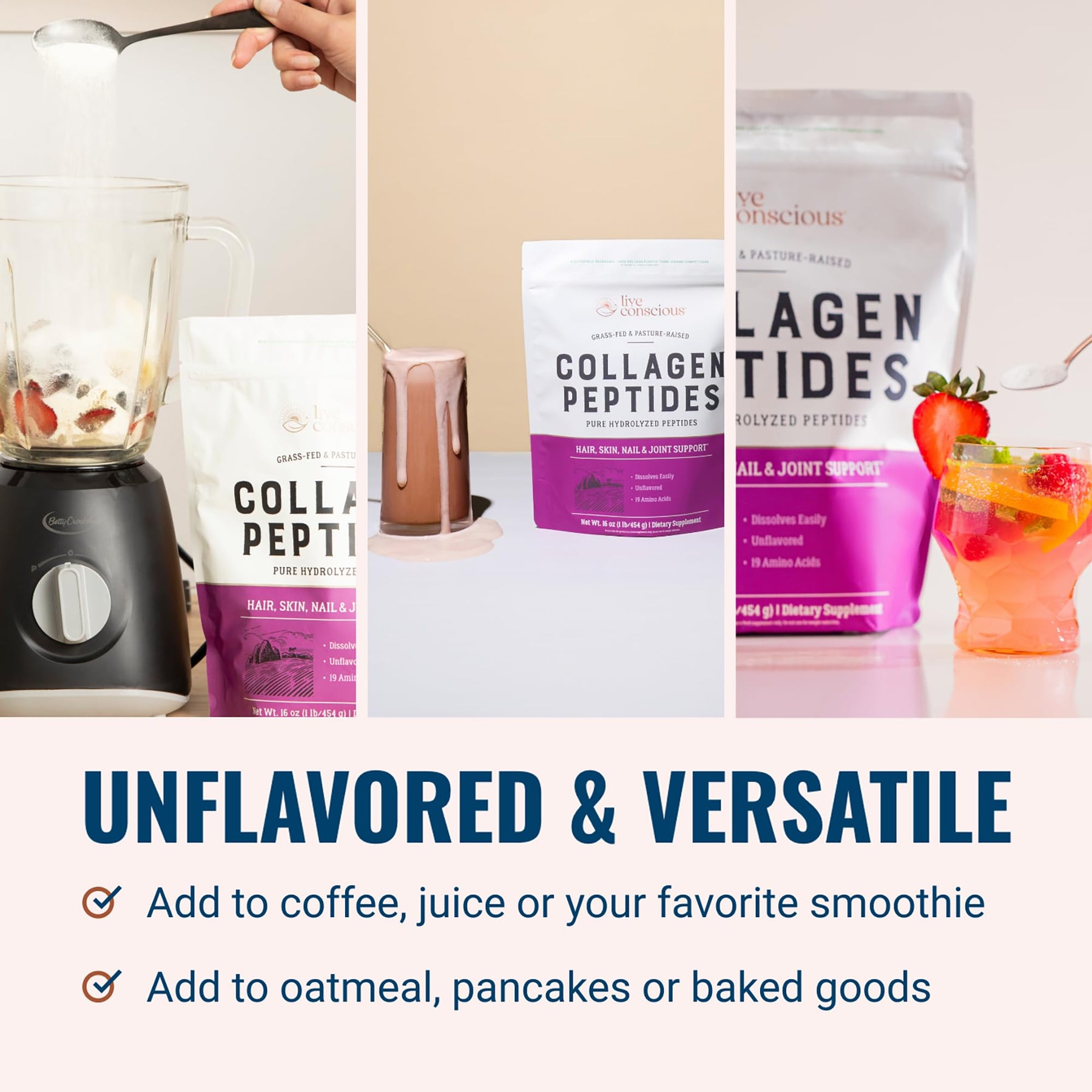 Único ingrediente: colágeno hidrolizado de bovino (tipos I & III).